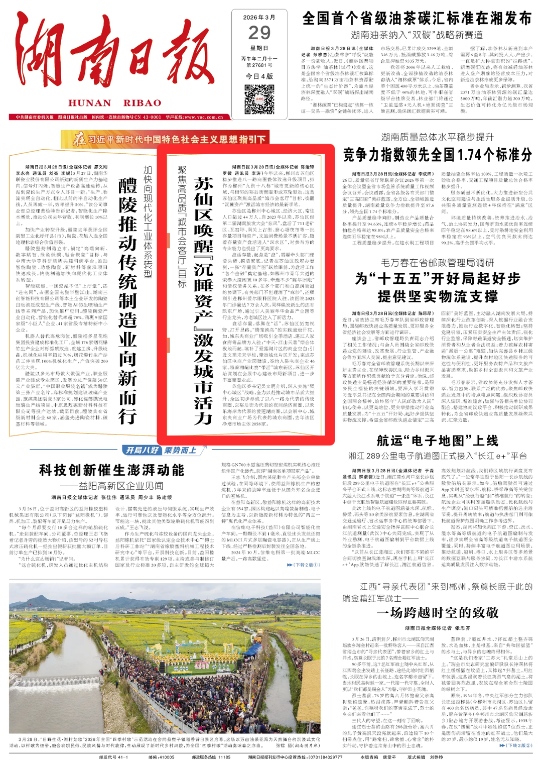 湖南日报头版头条发布文章
